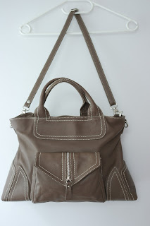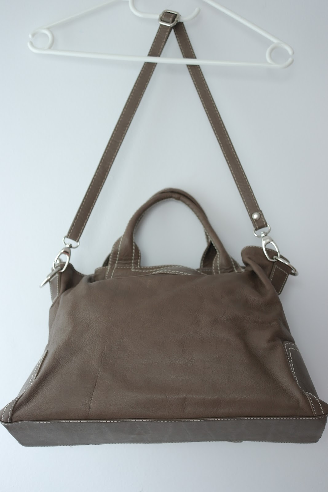 Prawdziwa, pachnąca skóra. Kolor szaro-beżowy. Beżowa płócienna podszewka. Przegroda z zamkiem, kieszonka zapinana, kieszonka na telefon. Do noszenia w ręce. Dodatkowy długi pasek regulowany.